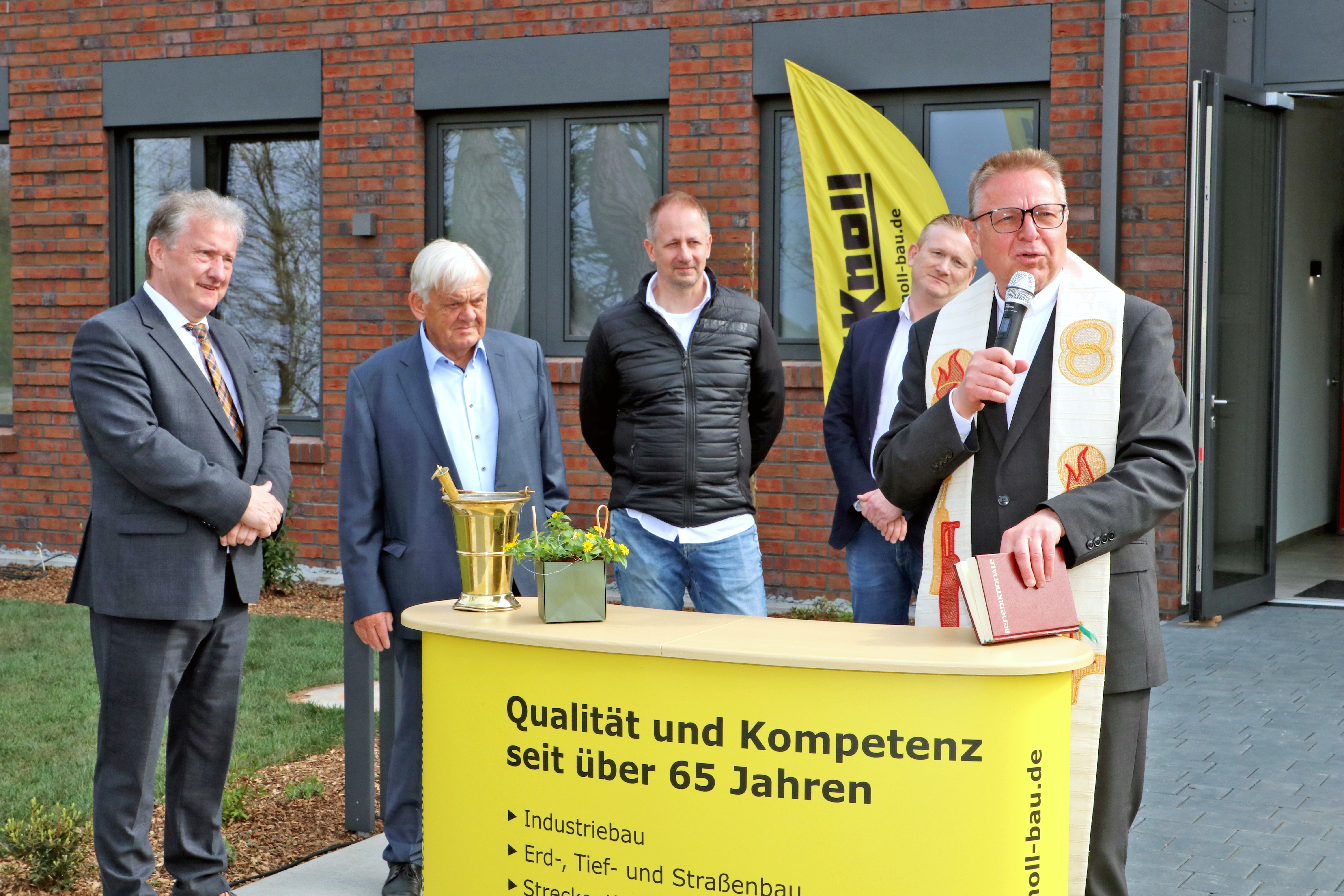 Die Ansprachen von Unternehmensinhaber Dr. Gerhard Knoll und Oberbauleiter Gerd Busse stellten heraus, die Präsenz in der Region mit dem neuen Bürogebäude weiter zu festigen und gemeinsam weiter zu wachsen. Nach den Grußworten von Bürgermeister Gerd Meyer weihte Pastor Hermann Josef Lücker die Räumlichkeiten ein. Anschließend bot sich den Gästen die Möglichkeit zur Besichtigung und zum gemeinsamen Austausch.